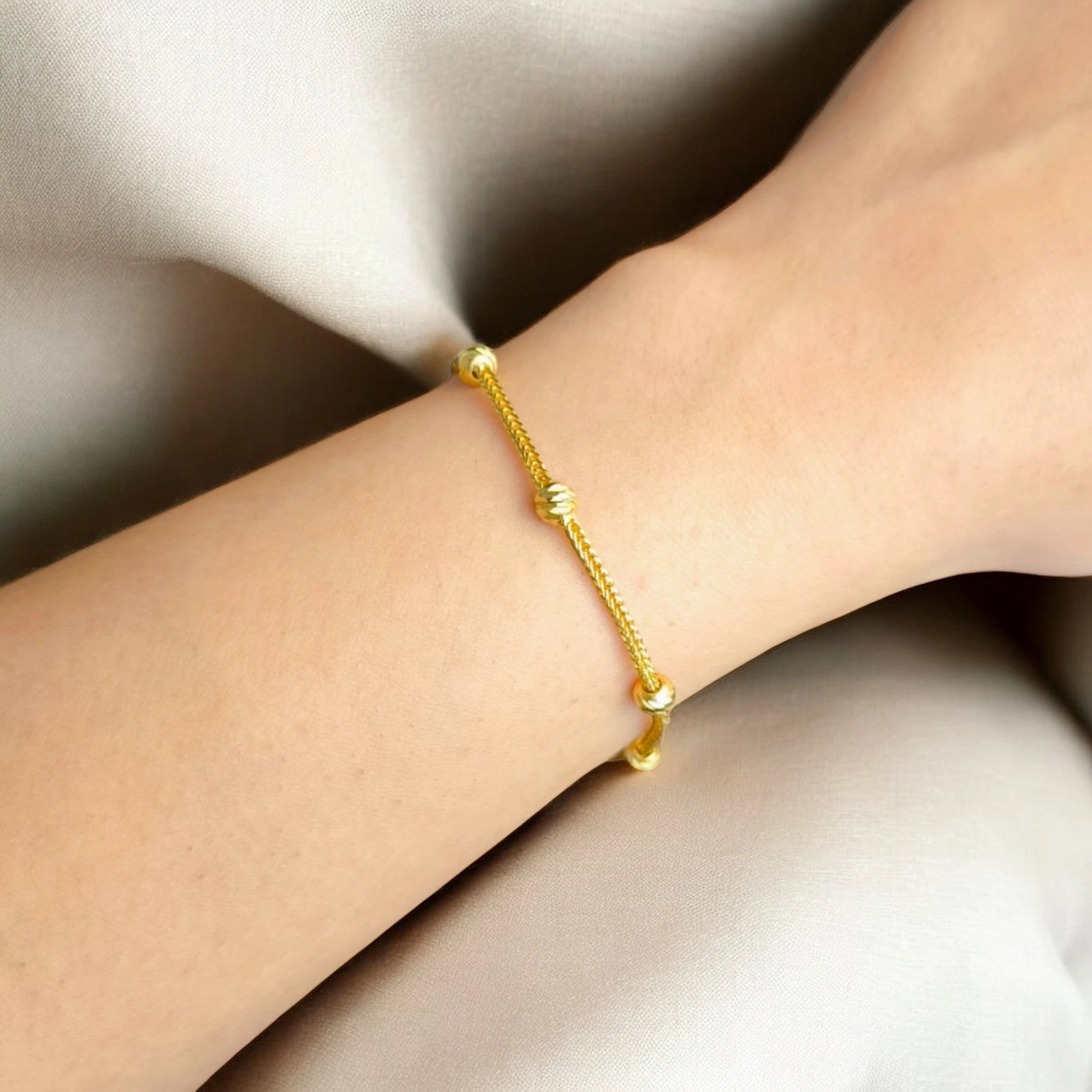 El işçiliğiyle özenle üretilen bu bileklik, 22 ayar altın kaplamasıyla gerçek altın ihtişamını yansıtırken, dayanıklılığı ve parlaklığı ile uzun süre ilk günkü ışıltısını korur. Burma bilezik, özellikle geleneksel ve modern tarzları harmanlayan kadınlar için mükemmel bir seçenektir.