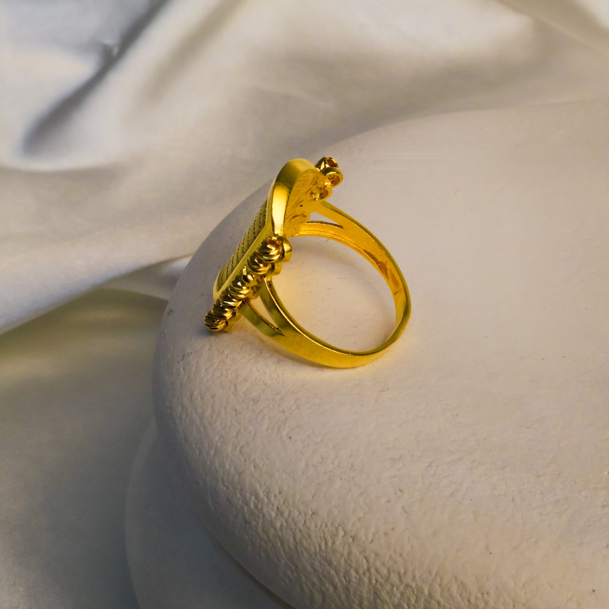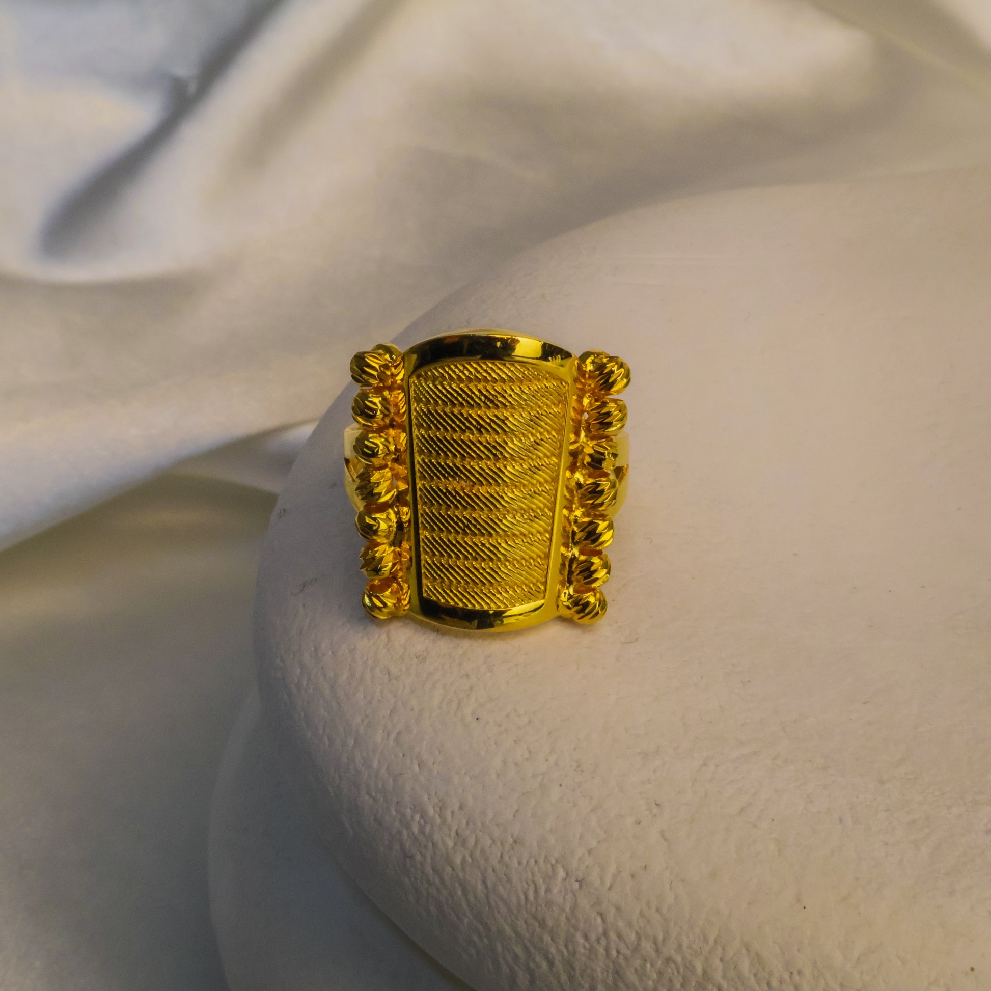 Klasik hasır dokusu ve zarif formuyla öne çıkan bu yüzük, el işçiliği ve kuyumcu işçiliği ile özenle hazırlanmıştır. Geleneksel hasır modeli, 22 ayar altın kaplamanın sıcak ışıltısıyla birleşerek her stile uyum sağlayan zamansız bir parça ortaya çıkarır.