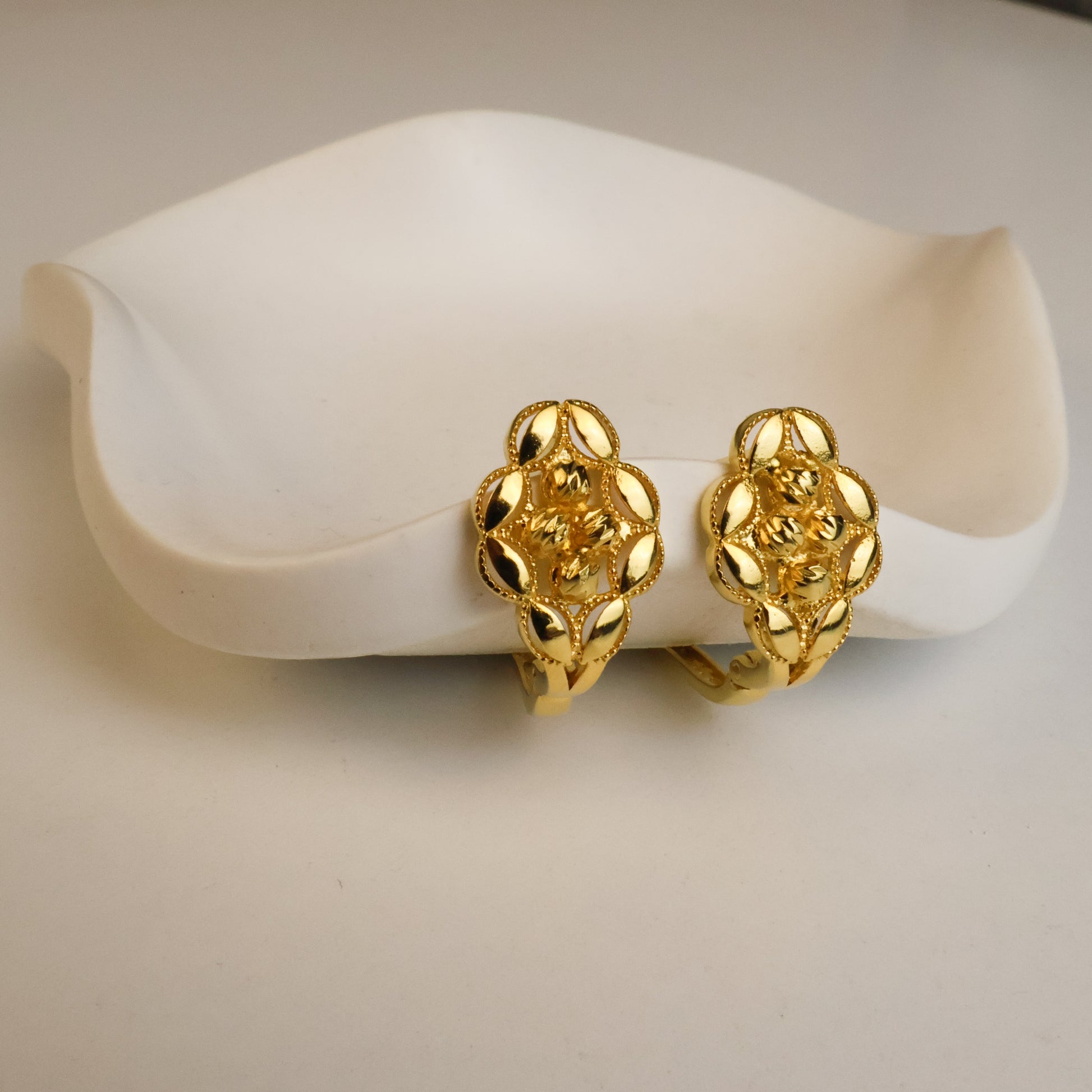 22 Ayar Altın Kaplama Klipsli Pullu Dorikalı Oval Küpe