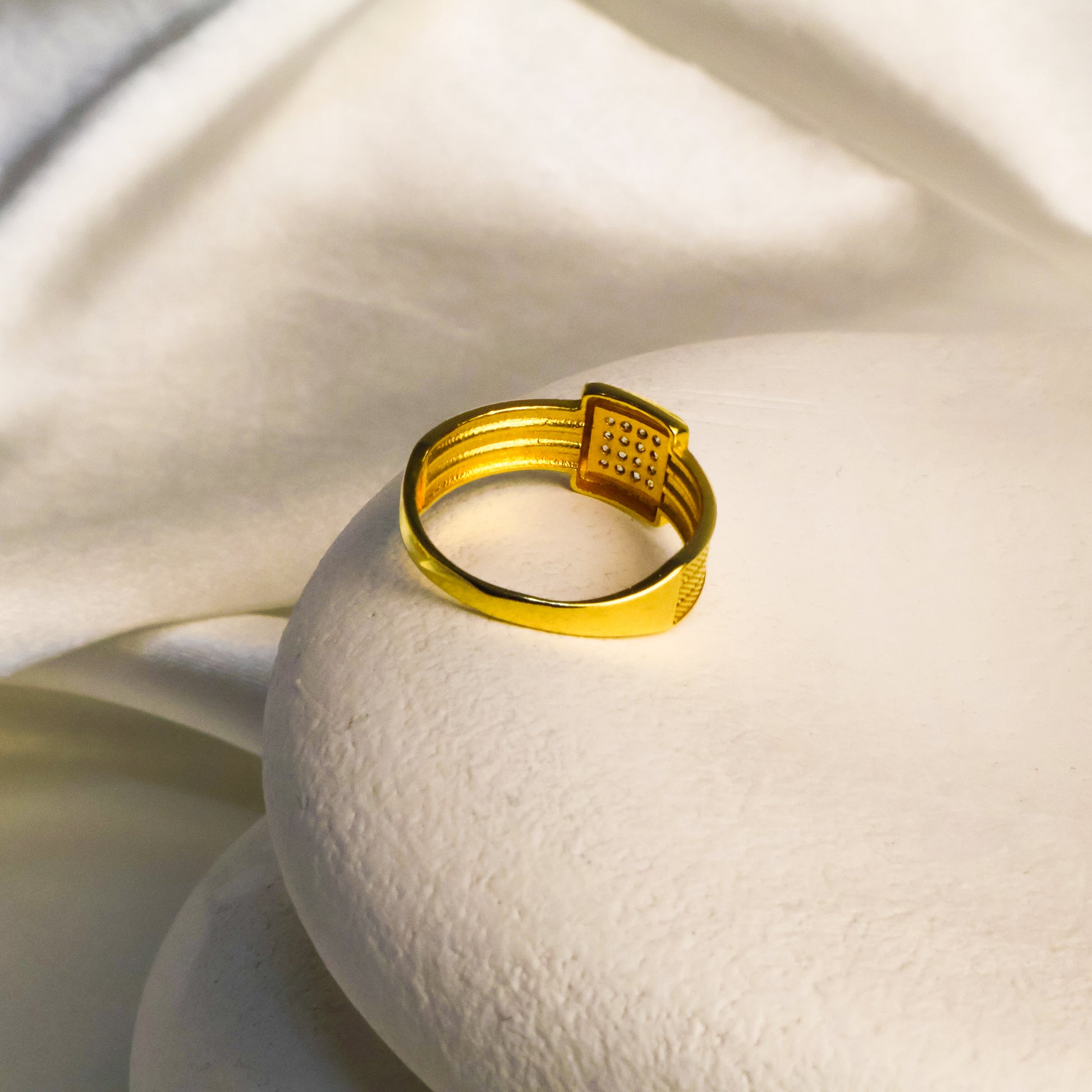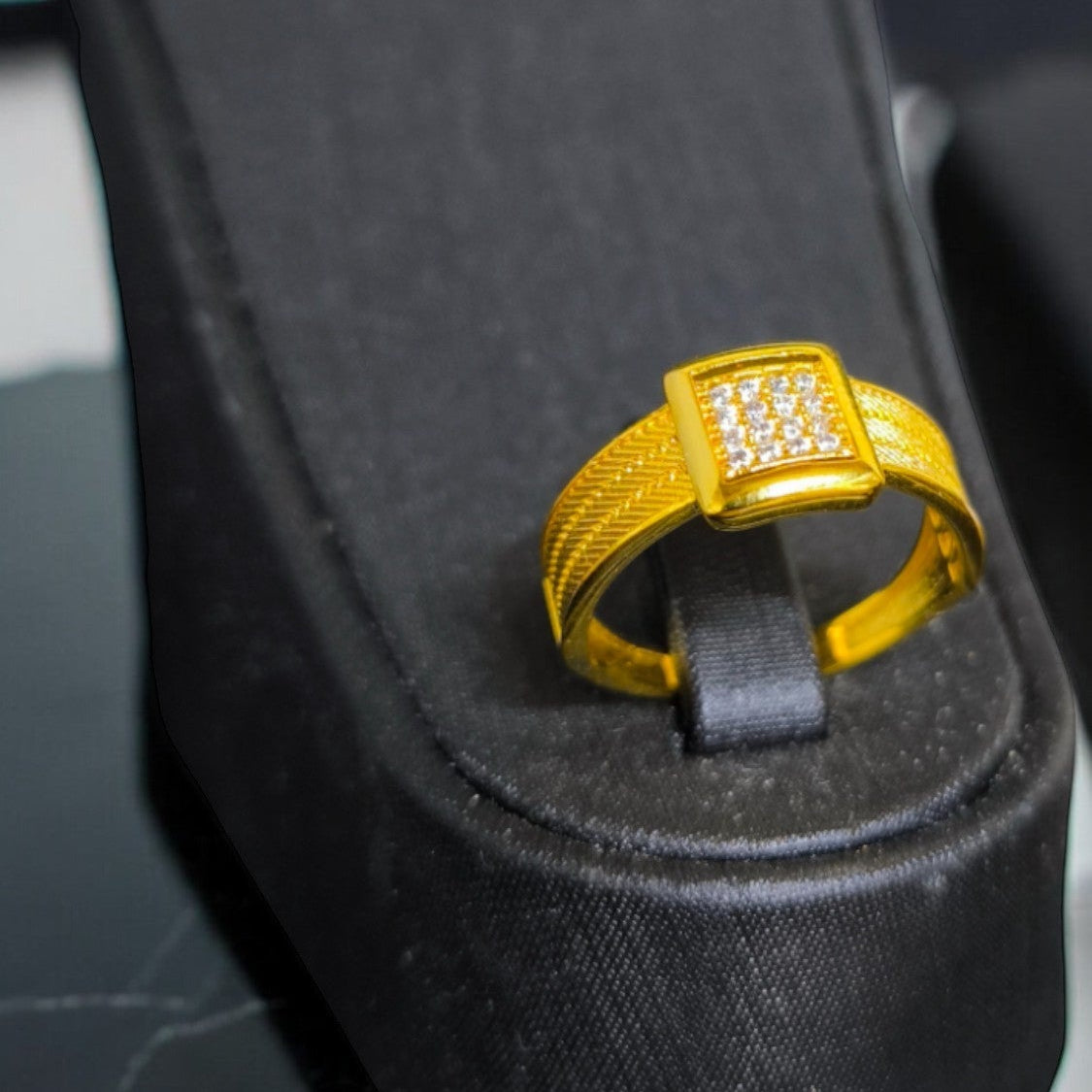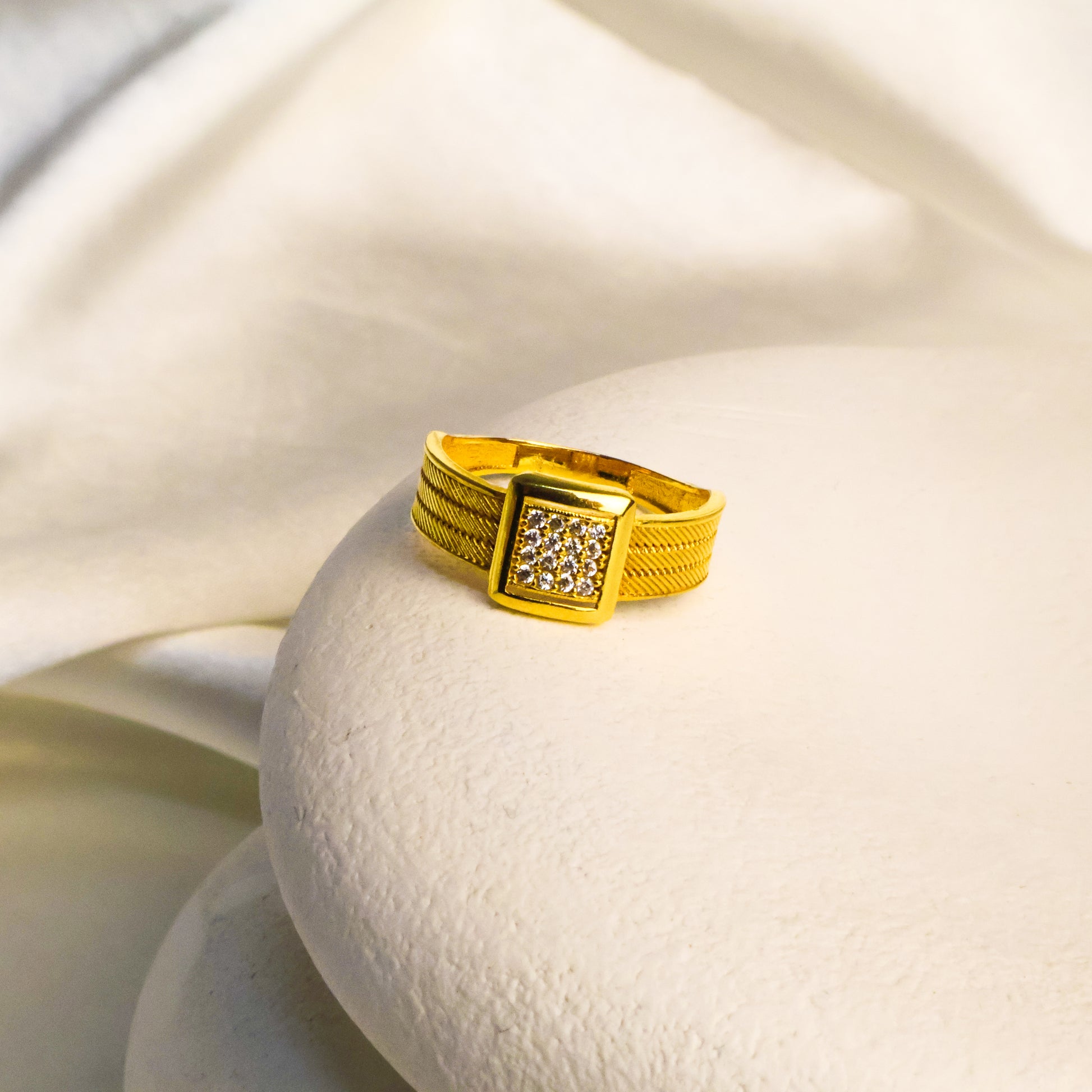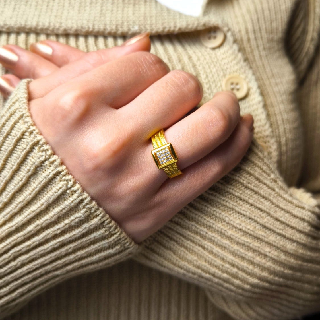 22 Ayar Altın Kaplama Zirkon Taşlı Kare Toka Hasır Yüzük