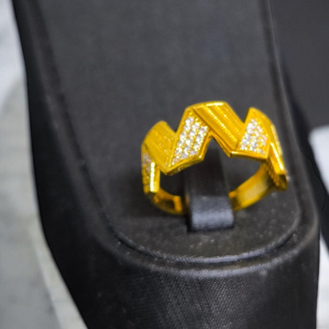 22 Ayar Altın Kaplama Zirkon Taşlı Zigzag Hasır Yüzük