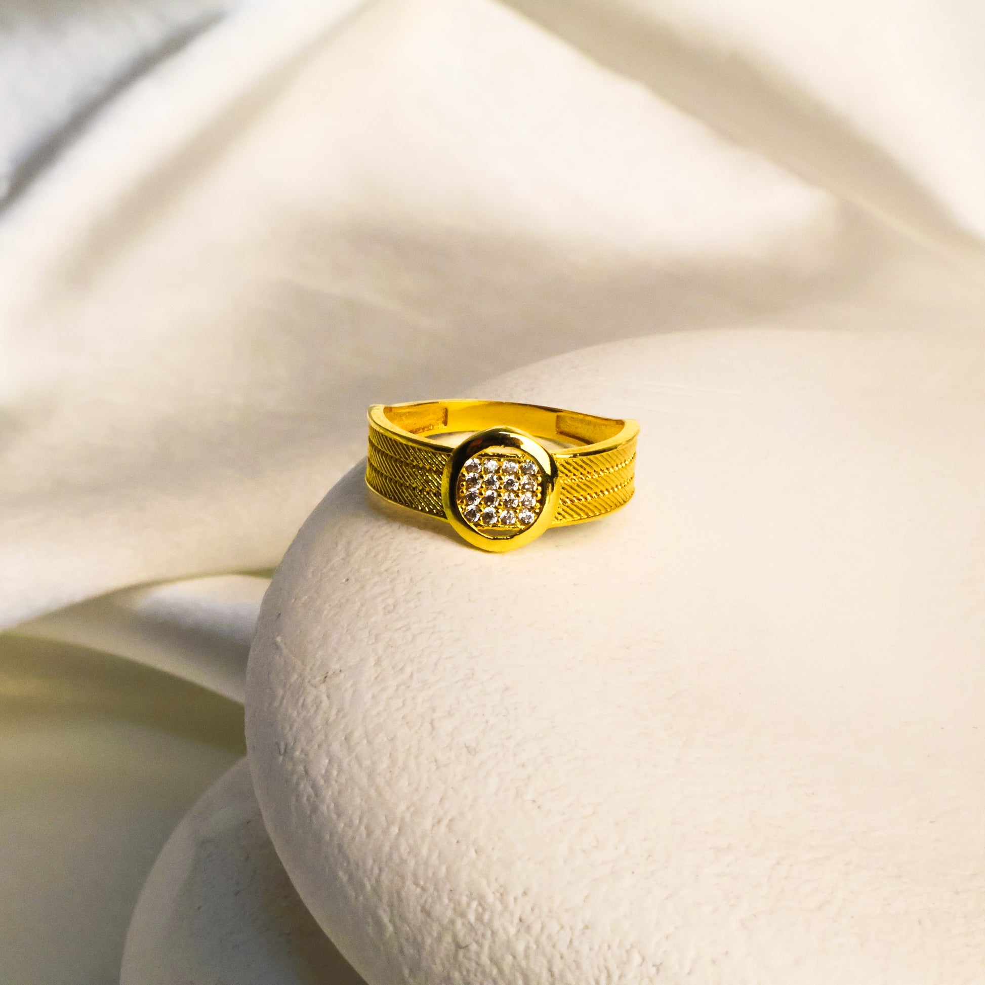 22 Ayar Altın Kaplama Zirkon Taşlı Oval Hasır Yüzük